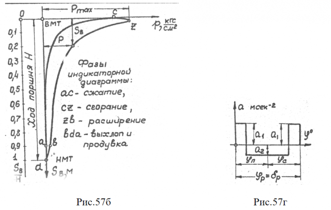 Изменение давления в цилиндре двигателя в зависимости от положения поршня представлено на индикаторной диаграмме (рис. 576), данные для построения которой приведены в табл.57.