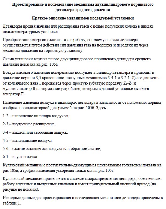 Для студентов МГТУ им. Н.Э.Баумана по предмету Теория механизмов и машин (ТММ)Проектирование и исследование механизма двухцилиндрового поршневого детандера среднего давления (вариант №105А)Проектирование и исследование механизма двухцилиндрового поршневого детандера среднего давления (вариант №105А)