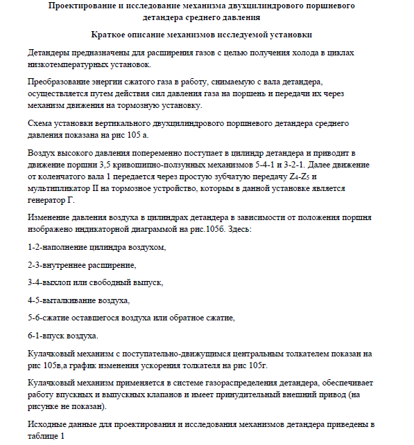 Для студентов МГТУ им. Н.Э.Баумана по предмету Теория механизмов и машин (ТММ)Проектирование и исследование механизмов двухцилиндрового поршневого детандера среднего давления (вариант №105Б)Проектирование и исследование механизмов двухцилиндрового поршневого детандера среднего давления (вариант №105Б)