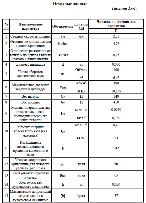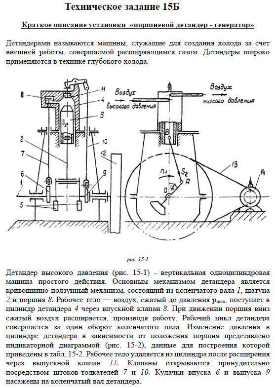 Проектирование и исследование механизмов поршневого детандера (вариант №15Б)