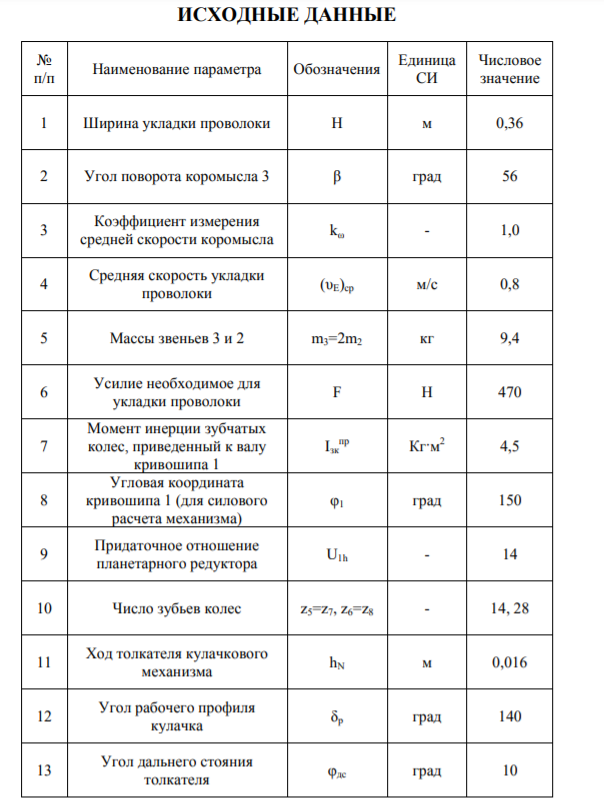 Главная » Учебные материалы » Теория механизмов и машин (ТММ) » Остальные учебные работы » МГТУ им. Н.Э.Баумана » 5 семестр » Номер 124 » Вариант Д » Проектирование и исследование механизмов установки для укладки арматурной проволоки на конвейер (вариант №124Д)