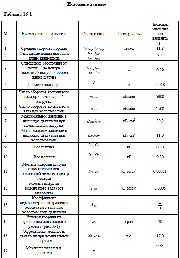 Другое 16: Проектирование и исследование механизмов двигателя и передачи мотоцикла (вариант №16Г) вариант Г