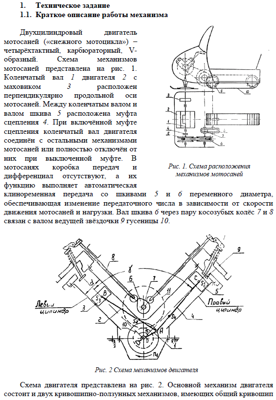 Проектирование и исследование механизмов двигателя и передачи мотосаней (вариант №17В)