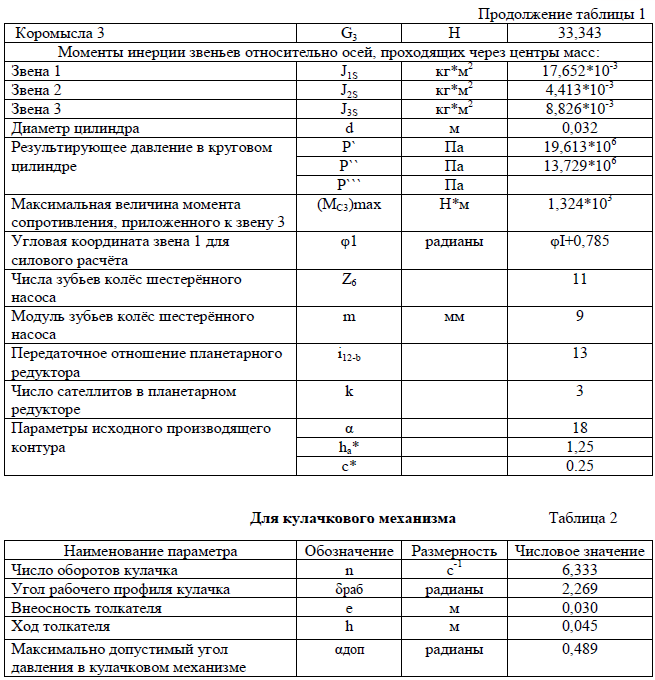 При проектировании и исследовании механизмов рулевой машины считать известными параметры, приведённые в табл. 1.