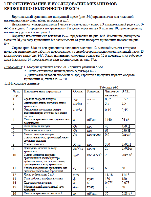 Проектирование и исследование кривошипно-ползунного пресса (вариант №84В)