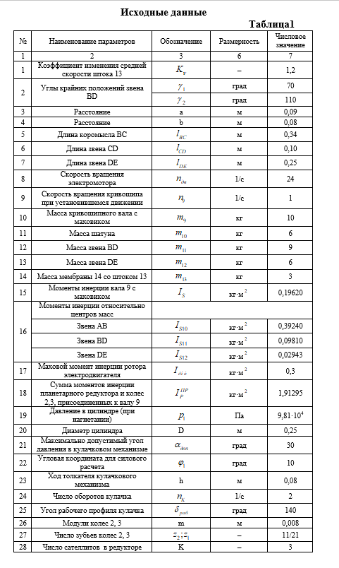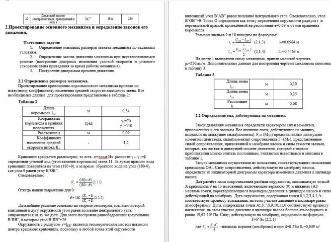 Расчетно-пояснительная записка к курсовому проекту “Проектирование и исследование механизмов мембранного насоса” содержит 26 страниц машинописного текста, 13 таблиц.