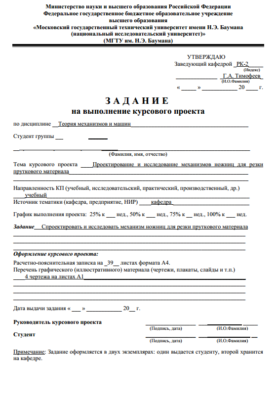 Для студентов МГТУ им. Н.Э.Баумана по предмету Теория механизмов и машин (ТММ)52А - Проектирование и исследование механизмов ножниц для резки пруткового материала52А - Проектирование и исследование механизмов ножниц для резки пруткового материала