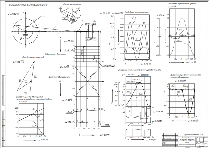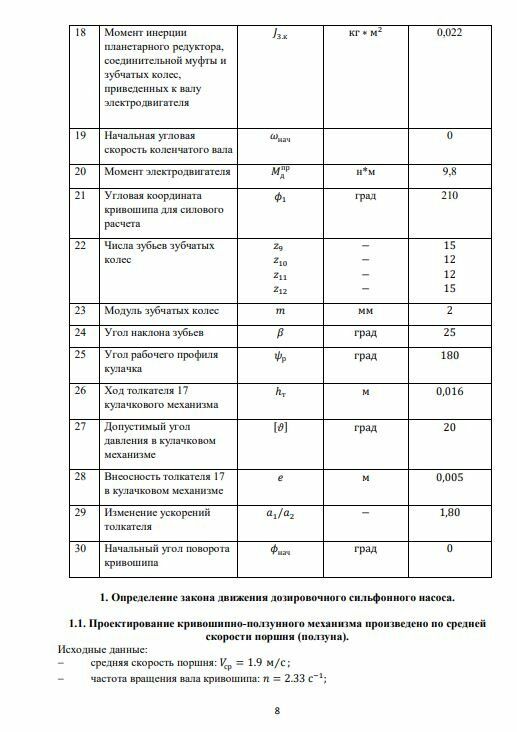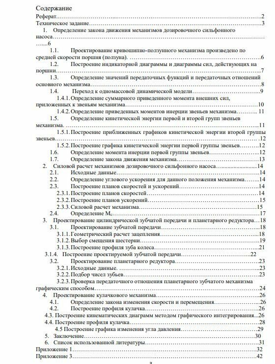 Курсовой проект состоит из расчетно-пояснительной записки – 31 лист машинописного текста, 4 листов формата А1 и дополнения в виде файлов программы Mathcad 15 list1.xmcd, list 4.xmcd. Расчетно-пояснительная записка содержит динамический расчет. Расчет включает определение закона движения механизмов дозировочного сильфонного насоса, силовой расчет основного механизма в заданном положении, расчет и исследование эвольвентной прямозубой зубчатой передачи и планетарного однорядного редуктора с одним внешним и одним внутренним зацеплением, расчет кулачкового механизма с качающимся роликовым толкателем.