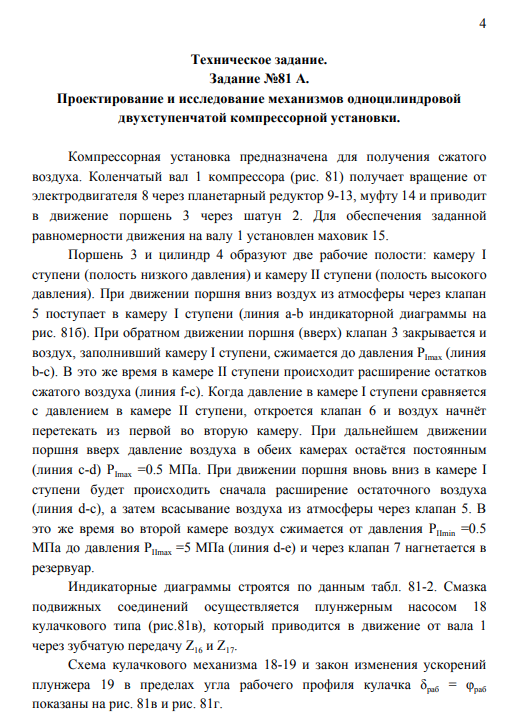 «Проектирование и исследование механизмов одноцилиндровой двухступенчатой компрессорной установки » Задание 81А