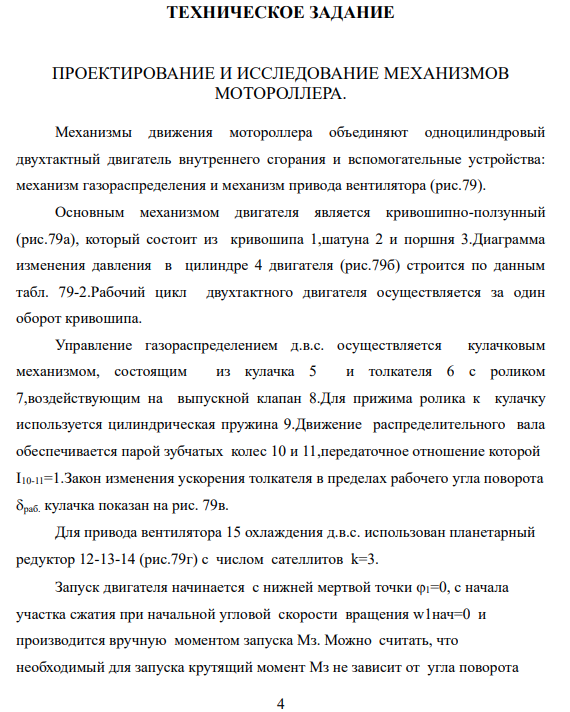 ТЕХНИЧЕСКОЕ ЗАДАНИЕ ПРОЕКТИРОВАНИЕ И ИССЛЕДОВАНИЕ МЕХАНИЗМОВ МОТОРОЛЛЕРА.