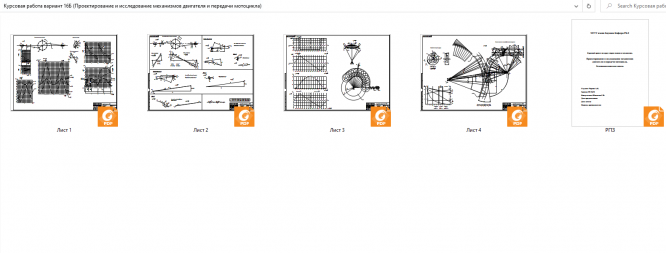 В данной работе производится исследование работы механизмов двигателя и передачи мотоцикла. Проект состоит из расчетно-пояснительной записки и четырех графических листов.