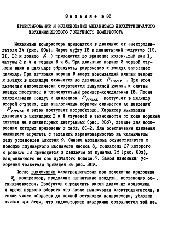 Курсовая работа по ТММ "Проектирование и исследование механизмов двухступенчатого двухцилиндрового воздушного компрессора". Вариант 80А. Данный файл не является 100% готовой к сдачи курсовой работой. Данная работа сможет только помочь и направить Вас при выполнении своего курсового проекта.