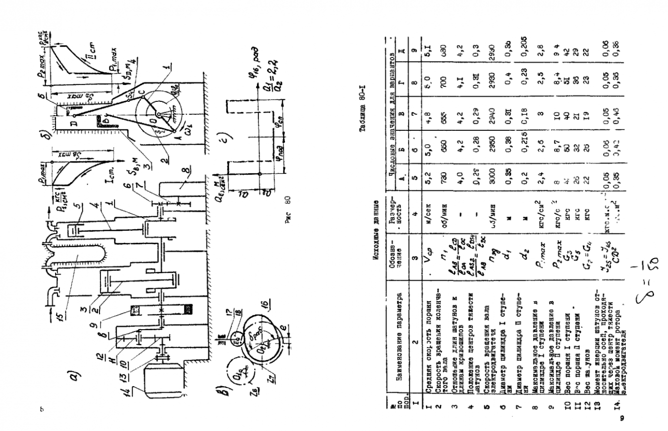 Другое 80: Проектирование и исследование механизмов двухступенчатого двухцилиндрового воздушного компрессора вариант А