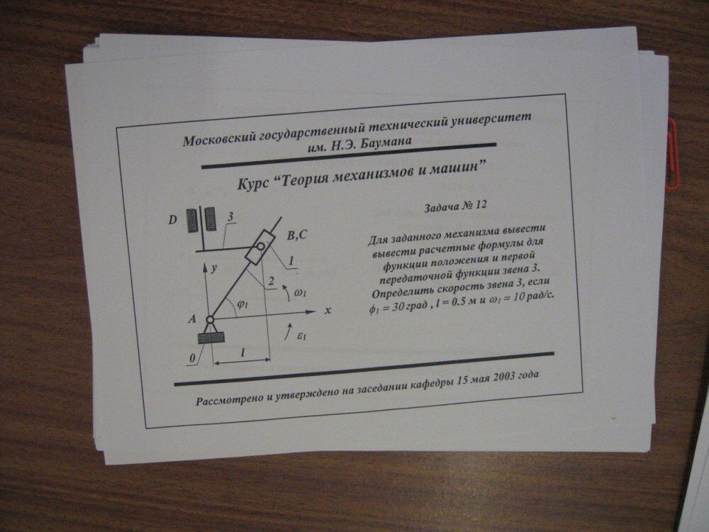 Для студентов МГТУ им. Н.Э.Баумана по предмету Теория механизмов и машин (ТММ)Билеты 2003Билеты 2003