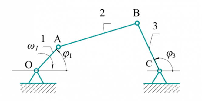 ОА, мм | АВ, мм | ВС, мм | ОС, мм | ω1, рад/с | Угол поворота φ1 , градус | |