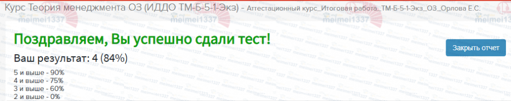 Ответы к экзамену Экзамен: Курс Теория менеджмента ОЗ - Полный/Аттестационный курс Итоговая работа
