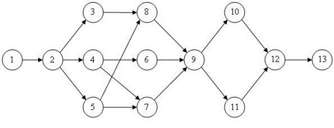 Задание: Вычислить критический путь по сетевому графику, расположенному выше со значениями длительностей работ, приведенными в Таблице 1.