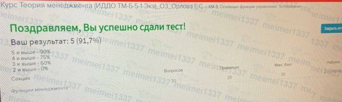 Курс Теория менеджмента - КМ-3. Основные функции управления. Тестирование - 91,7%