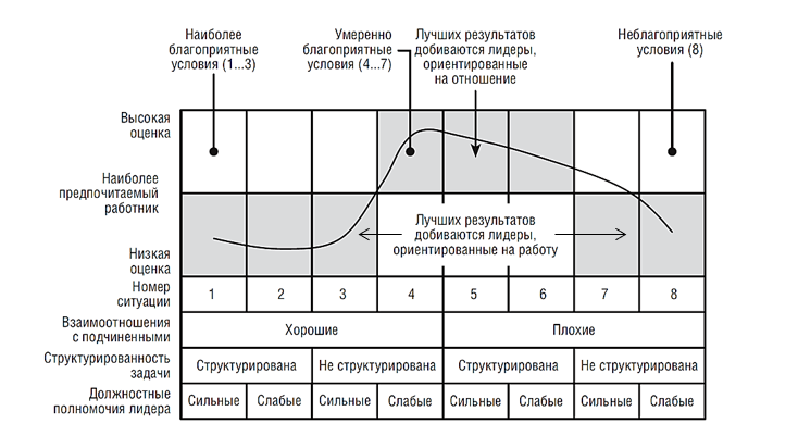 Предположение, что стиль руководства напрямую зависит от решаемой задачи и сложившейся управленческой ситуации, которая оценивается по тому, в какой мере в ней можно применить власть и влияние руководителя, лежит в основе …