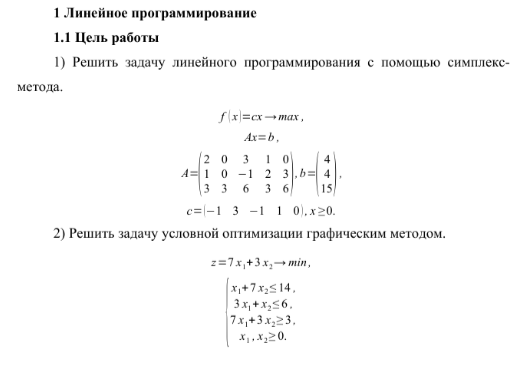 1 Решить задачу линейного программирования симплекс-методом для следующих условий: