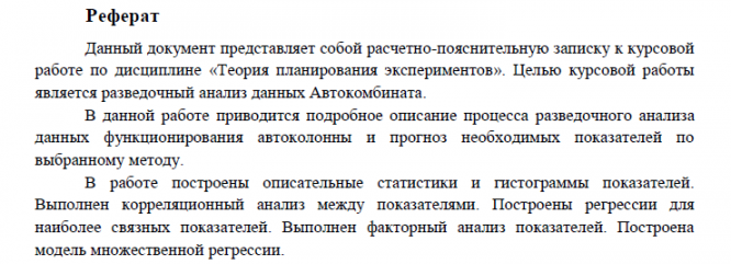 Главная » Учебные материалы » Теория планирования экспериментов » Курсовые работы » МГТУ им. Н.Э.Баумана » 9 семестр (1 семестр магистратуры) » Разведочный анализ данных функционирования автоколонны №V152 и прогноз показателей коэффициента выпуска автомобилей по методу множественной регрессии