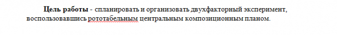"Постановка двухфакторного эксперимента с использованием квадратичной модели объекта. Рототабельный центральный композиционный план"