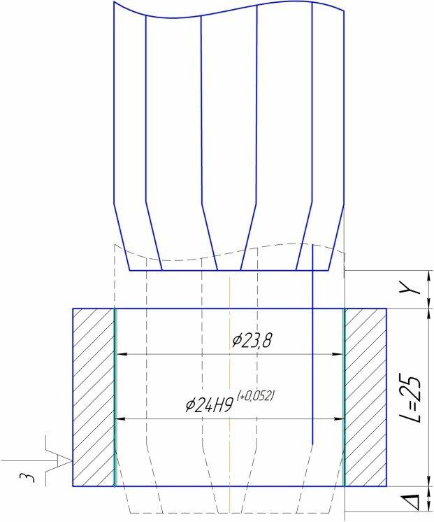На вертикально сверлильном станке 2Н135 развертывают отверстие диаметром Ø23,8 до диаметра Ø24Н9 на глубину 25 мм. Длина отверстия и длина заготовки 85 мм. Параметр шероховатости необходимый обработанной поверхности Ra=2 мкм. Материал заготовки – ал