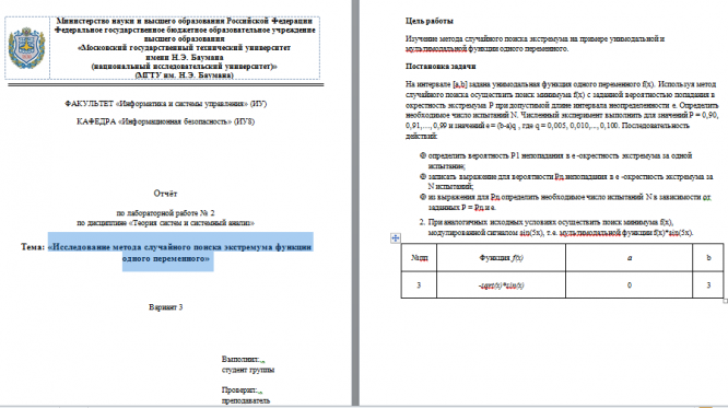 Для студентов МГТУ им. Н.Э.Баумана по предмету Теория систем и системный анализ (ТСиСА)«Исследование метода случайного поиска экстремума функции одного переменного» «Исследование метода случайного поиска экстремума функции одного переменного»