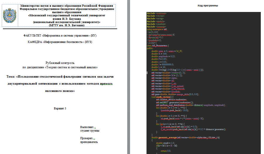 Для студентов МГТУ им. Н.Э.Баумана по предмету Теория систем и системный анализ (ТСиСА)«Исследование стохастической фильтрации сигналов как задачи двухкритериальной оптимизации с использованием методов прямого пассивного поиска» «Исследование стохастической фильтрации сигналов как задачи двухкритериальной оптимизации с использованием методов прямого пассивного поиска»
