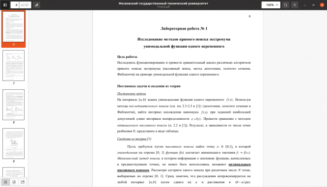 Для студентов МГТУ им. Н.Э.Баумана по предмету Теория систем и системный анализ (ТСиСА)Исследование методов прямого поиска экстремума унимодальной функции одного переменногоИсследование методов прямого поиска экстремума унимодальной функции одного переменного