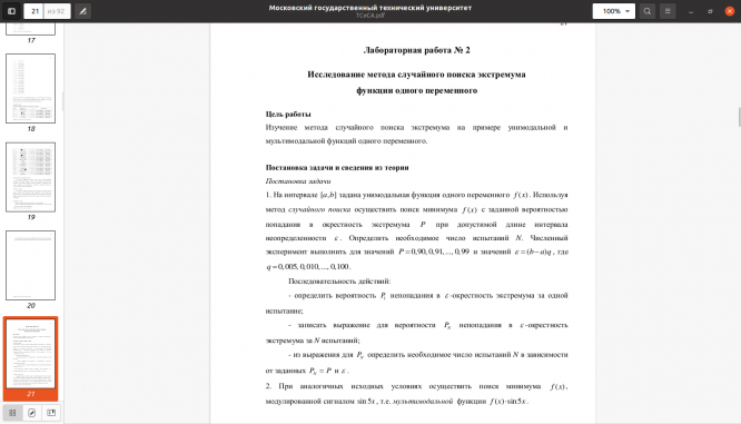 Для студентов МГТУ им. Н.Э.Баумана по предмету Теория систем и системный анализ (ТСиСА)Исследование метода случайного поиска экстремума функции одного переменногоИсследование метода случайного поиска экстремума функции одного переменного
