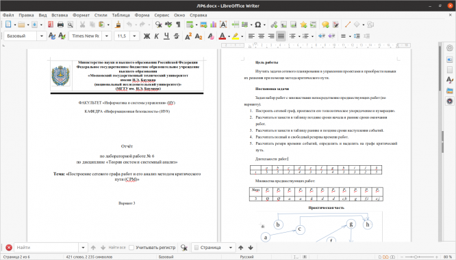 Для студентов МГТУ им. Н.Э.Баумана по предмету Теория систем и системный анализ (ТСиСА)Построение сетевого графа работ и его анализ методом критического пути (CPM)Построение сетевого графа работ и его анализ методом критического пути (CPM)