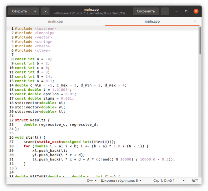 Характеристики лабораторной работы