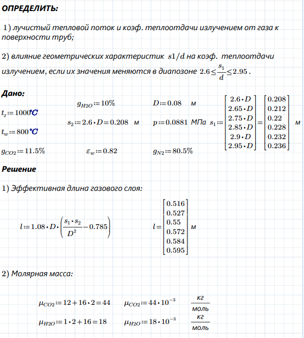 ОПРЕДЕЛИТЬ: 1) лучистый тепловой поток и коэф. теплоотдачи излучением от газа к поверхности труб; 2) влияние геометрических характеристик s1/d на коэф. теплоотдачи излучением, если их значения меняются в диапозоне