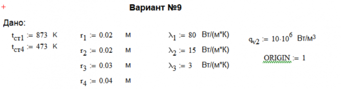 ДЗ ДЗ№1: Теплопроводность при стационарном режиме вариант 9