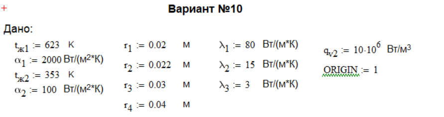 ДЗ ДЗ№1: Теплопроводность при стационарном режиме вариант 10