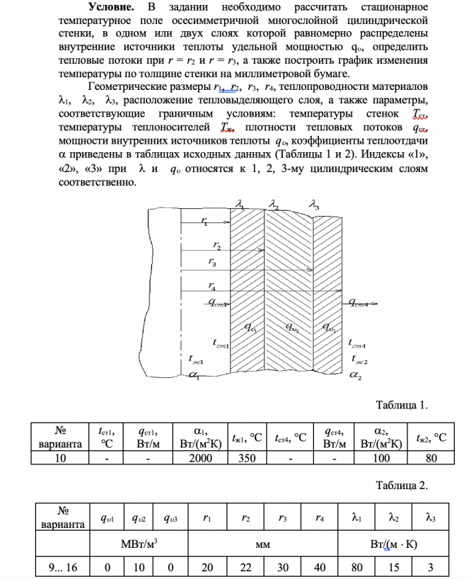 ДЗ 1: Теплопроводность при стационарном режиме вариант 10