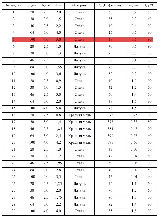 ДЗ 2: Конвективный теплообмен при вынужденном и свободном движении жидкости вариант 5