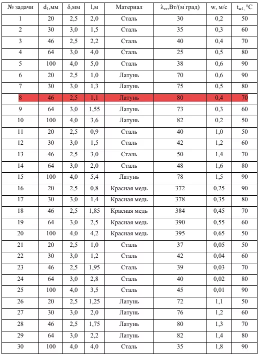 ДЗ 2: Конвективный теплообмен при вынужденном и свободном движении жидкости вариант 8