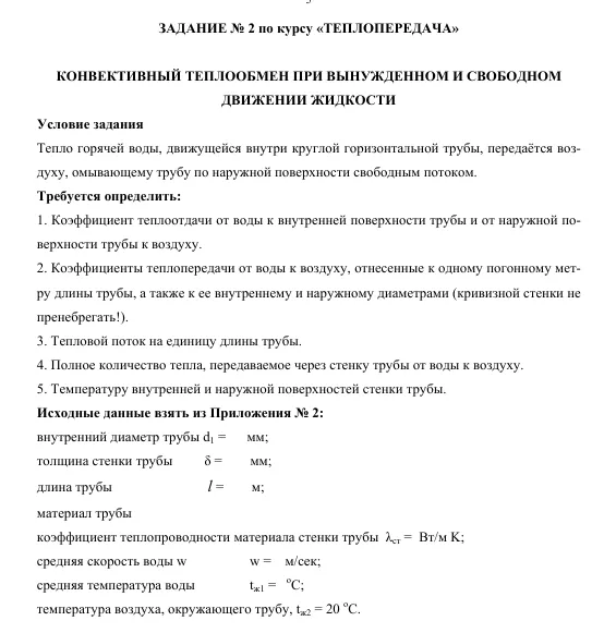 Главная » Учебные материалы » Теория тепломассообмена » Домашние задания » МГТУ им. Н.Э.Баумана » Номер 2 » Вариант 8 » Конвективный теплообмен при вынужденном и свободном движении жидкости