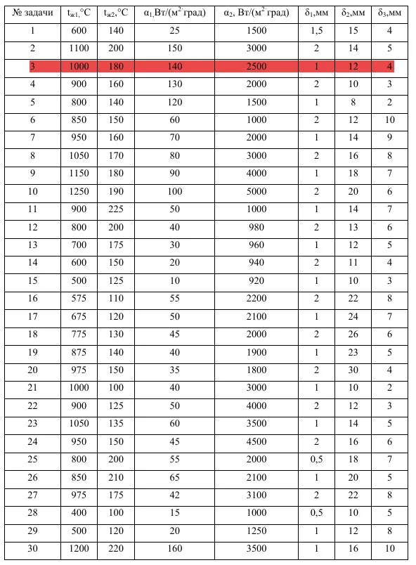 ДЗ 1: Теплопередача через многослойную плоскую стенку вариант 3