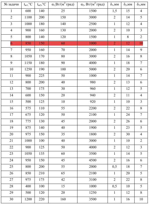 ДЗ 1: Теплопередача через многослойную плоскую стенку вариант 6