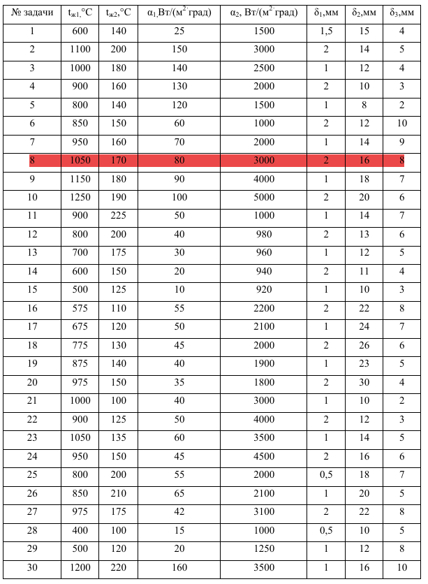 ДЗ 1: Теплопередача через многослойную плоскую стенку вариант 8