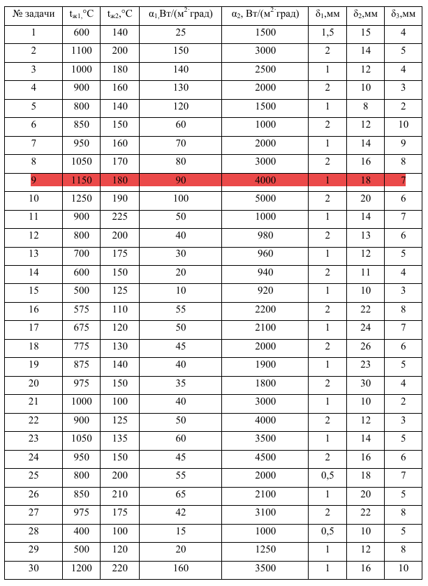 ДЗ 1: Теплопередача через многослойную плоскую стенку вариант 9