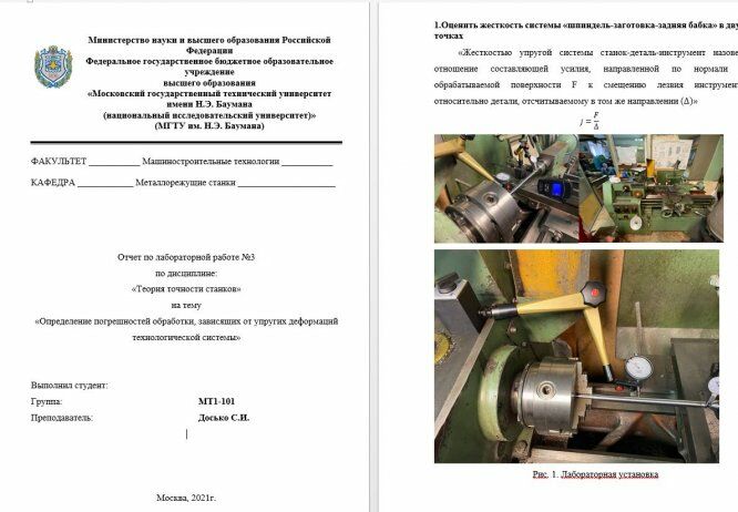 Для студентов МГТУ им. Н.Э.Баумана по предмету Теория точности станковОтчет по лабораторной работе №3 (Определение погрешностей обработки, зависящих от упругих деформаций технологической системы)Отчет по лабораторной работе №3 (Определение погрешностей обработки, зависящих от упругих деформаций технологической системы)