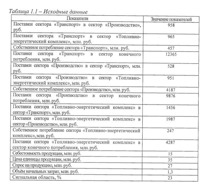 Решение математической модели. Методика определения коэффициентов матриц прямых и полных затрат.. .11