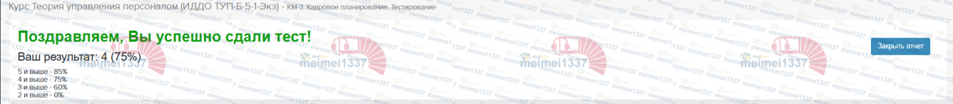 Для студентов ИДДО НИУ «МЭИ» по предмету Теория управления персоналомТеория управления персоналом - КМ-3. Кадровое планирование. Тестирование - 75%Теория управления персоналом - КМ-3. Кадровое планирование. Тестирование - 75%