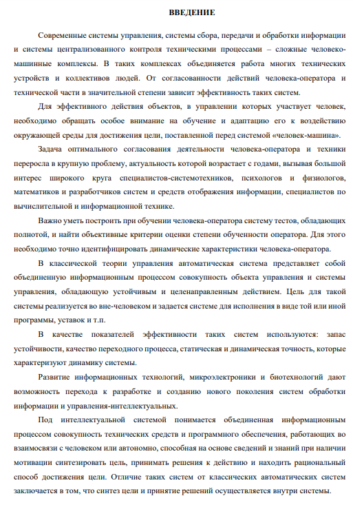 В рамках данного курсового проекта проведены моделирование и идентификация системы «человек-машина» для получения оценок затрат времени на форму мышления при работе человека-оператора в составе интеллектуальной системы. В данной работе исследуются влияние параметров передаточной функции человекаоператора на устойчивость и качество работы человеко-машинных систем. Исходя из полученных результатов в графической среде имитационного моделирования MATLAB Simulink создана модель системы управления угловой скоростью тангажа самолета. Цель данной работы – произвести идентификацию системы «человек-машина» на основе разложения функционалов Винера.