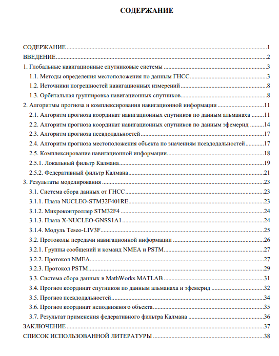 Разработать и реализовать алгоритм прогноза местоположения объекта по значениям координат навигационных спутников и псевдодальностей. Разработать и реализовать алгоритмы прогноза координат спутников по данным альманаха и эфемерид, а также алгоритм прогноза псевдодальностей. Провести комплексирование полученной навигационной информации с применением федеративного фильтра Калмана.