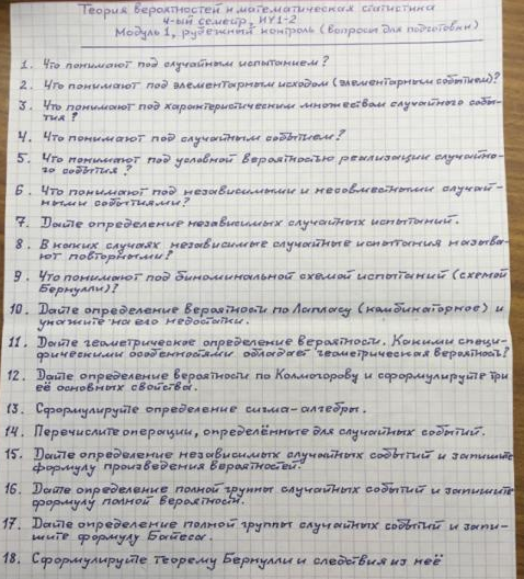 Для студентов МГТУ им. Н.Э.Баумана по предмету Теория вероятностей и математическая статистика (ТВиМС)Рк1 ответы теорияРк1 ответы теория